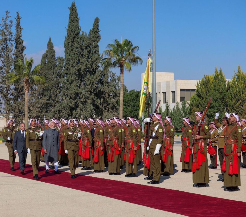 प्रधानमंत्री नरेंद्र मोदी मंगलवार को जॉर्डन के बिजनेस फोरम में शामिल हुए, जहाँ उन्हें जॉर्डन के किंग अब्दुल्ला ने गर्मजोशी और मित्रता के साथ स्वागत किया इस अवसर पर दोनों नेताओं ने भारत-जॉर्डन के पुराने और मजबूत संबंधों पर चर्चा की और आपसी सहयोग को और बढ़ावा देने के लिए पांच अहम समझौतों पर हस्ताक्षर किए किंग अब्दुल्ला ने PM मोदी के स्वागत करते हुए कहा कि भारत और जॉर्डन के बीच सदियों से दोस्ताना और सहयोगी संबंध रहे है उन्होंने मोदी को गले लगाकर कहा कि दोनों देशों के बीच रिश्ते बहुत खास और गहरे हैं