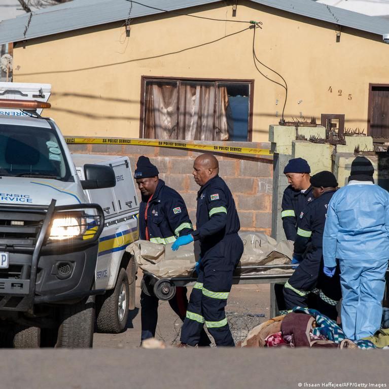 दक्षिण अफ्रीका के जोहान्सबर्ग शहर के पास रविवार को एक शराबखाने के बाहर भयावह सामूहिक गोलीबारी की घटना हुई है इस हमले में अब तक 10 लोगों की मौत हो गई है, जबकि 10 अन्य गंभीर रूप से घायल हैं घायलों को तुरंत नजदीकी अस्पतालों में भर्ती कराया गया, जहां उनकी हालत स्थिर बताई जा रही हैस्थानीय पुलिस के अनुसार, अज्ञात बंदूकधारी अचानक शराबखाने के बाहर आए और अंधाधुंध गोलीबारी शुरू कर दी इस हमले के दौरान इलाके में अफरा-तफरी मच गई और लोग इधर-उधर भागने लगे पुलिस कॉमिक बारे मे सूचना मिलते ही पुलिस ने तुरंत इलाके को घेर लिया और हमलावरों की तलाश शुरू कर दी है इस घटना के पीछे का कारण फिलहाल स्पष्ट नहीं हो पाया है अधिकारियों का कहना है
