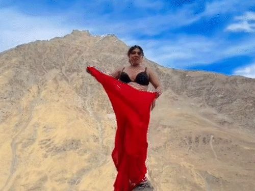 कई पोज़ लिए गए, जिन्हें सोशल मीडिया पर साझा किया गया वीडियो में उनके व्यवहार और पोशाक के कारण दर्शकों में विरोध की लहर फैल गईस्थानीय प्रशासन और पुलिस ने मामले पर संज्ञान लेते हुए कहा कि वीडियो की समीक्षा की जा रही है। यदि कहीं कानून या सार्वजनिक शिष्टाचार का उल्लंघन पाया गया, तो संबंधित व्यक्ति के खिलाफ कार्रवाई की जाएगी पर्यटन विभाग ने भी इस घटना पर चिंता व्यक्त की और कहा कि पर्यटन स्थलों में ऐसे कृत्यों को बढ़ावा नहीं देना चाहिएसोशल मीडिया पर वीडियो के वायरल होते ही लोग अलग-अलग प्रतिक्रियाएं दे रहे हैं कुछ लोग इसे अभिव्यक्ति की स्वतंत्रता के तहत सही मान रहे हैं, जबकि बड़ी संख्या में लोगों ने इसे गलत और आपत्तिजनक बताया है स्थानीय लोग और पर्यटक भी इस पर मिश्रित प्रतिक्रिया दे रहे हैं, कुछ का कहना है कि ऐसे कार्य पर्यटन स्थल की छवि को नुकसान पहुंचाते हैंइस विवाद ने केवल सोशल मीडिया ही नहीं,