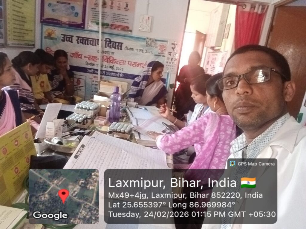 लक्ष्मीपुर स्थित आयुष्मान आरोग्य मंदिर उप स्वास्थ्य केंद्र में आयोजित मासिक बैठक के दौरान हाइपरटेंशन और मधुमेह (ब्लड शुगर) से पीड़ित मरीजों को नियमित स्वास्थ्य जांच कराने की सलाह दी गई। प्रखंड स्वास्थ्य प्रबंधक अनीश कुमार और चिकित्सा पदाधिकारी डॉ. अंकित सौरभ ने कहा कि ऐसे मरीजों की हर महीने समग्र स्वास्थ्य जांच, टीबी स्क्रीनिंग तथा आवश्यक उपचार सुनिश्चित किया जाए।