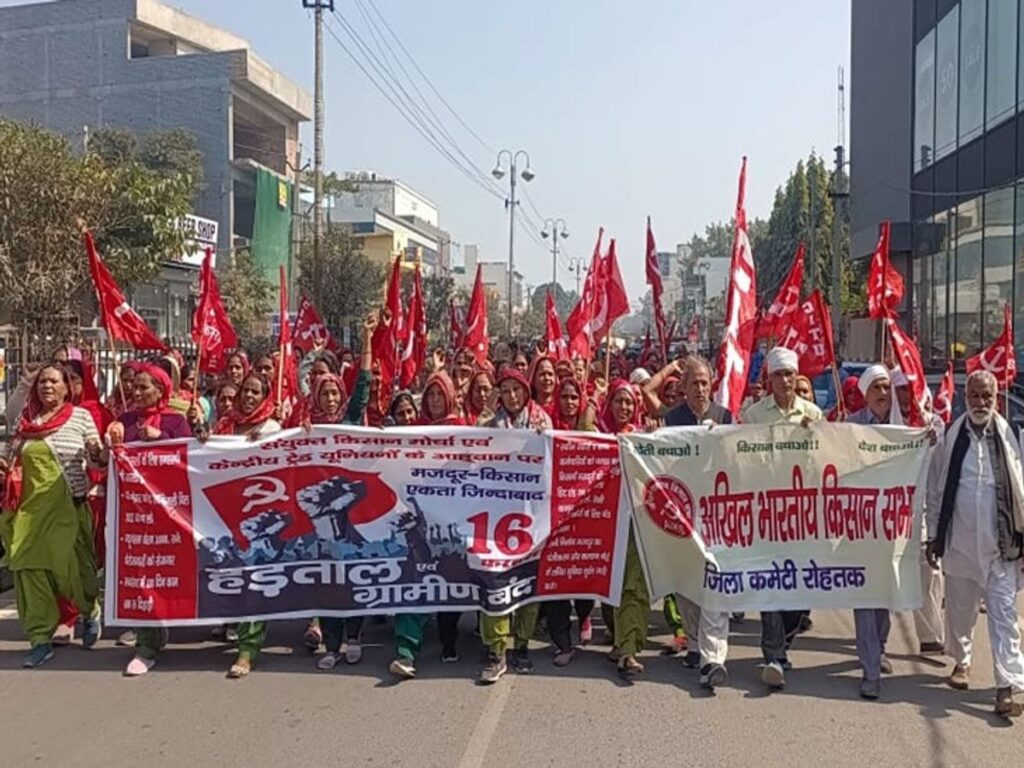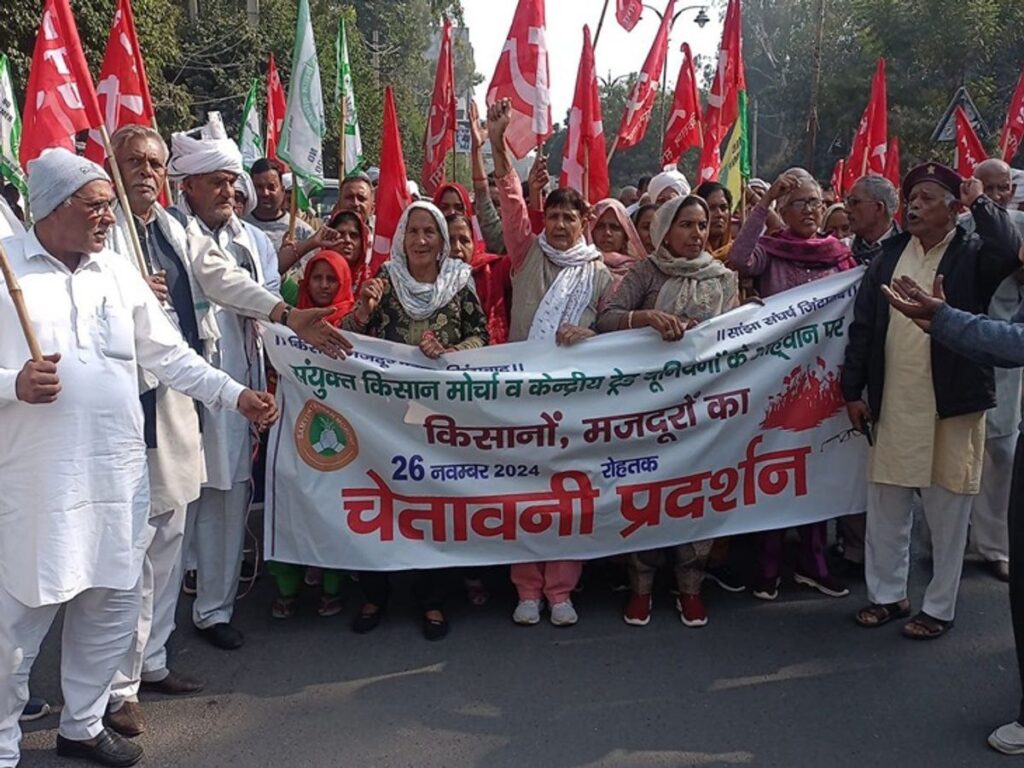 हरियाणा के रोहतक शहर में बुधवार को नए लेबर कोड को लेकर किसान और मजदूर यूनियनों ने मिलकर बड़ा प्रदर्शन किया। सुबह से ही शहर के कई हिस्सों में यूनियनों के झंडे, पोस्टर और बैनर लेकर कार्यकर्ता इकट्ठा होने लगे। दोपहर तक हजारों की संख्या में मजदूर, किसान, खेत मजदूर, औद्योगिक कर्मचारी और विभिन्न संगठनों के प्रतिनिधि शहर की मुख्य सड़कों पर उतर आए और सरकार द्वारा लागू किए गए नए लेबर कोड्स को मजदूर-विरोधी बताते हुए जोरदार विरोध जताया।